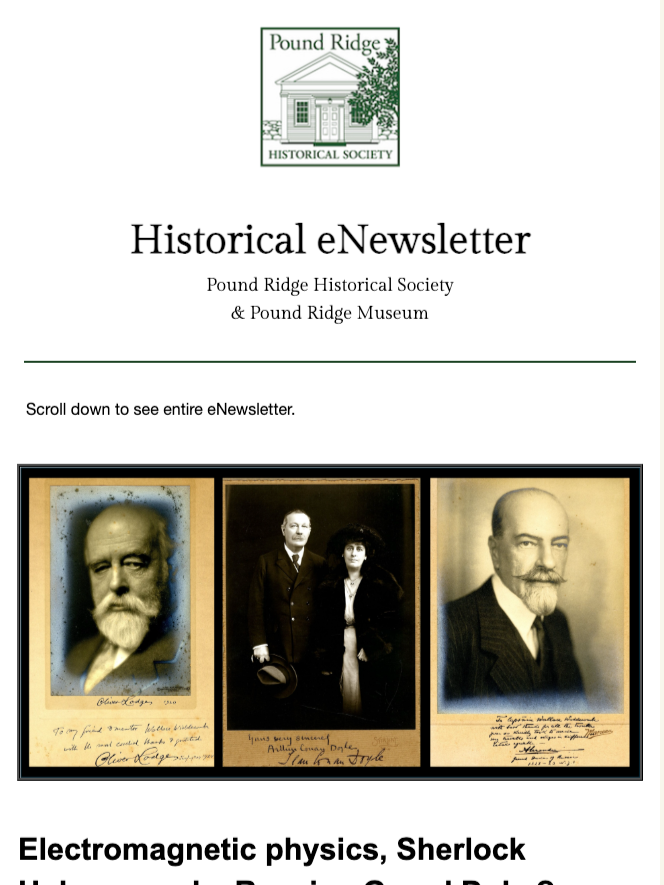The Pound Ridge Historical Society The Memory Keepers of Pound Ridge Explore our Exhibit Become a Member Featured Apr 25 Upcoming Events Newsletter Museum Exhibit: Then and Now School Visits and Tours Check out our Store - New Apparel Coming Soon! Quick View Visit our Shop Time Capsule 2020